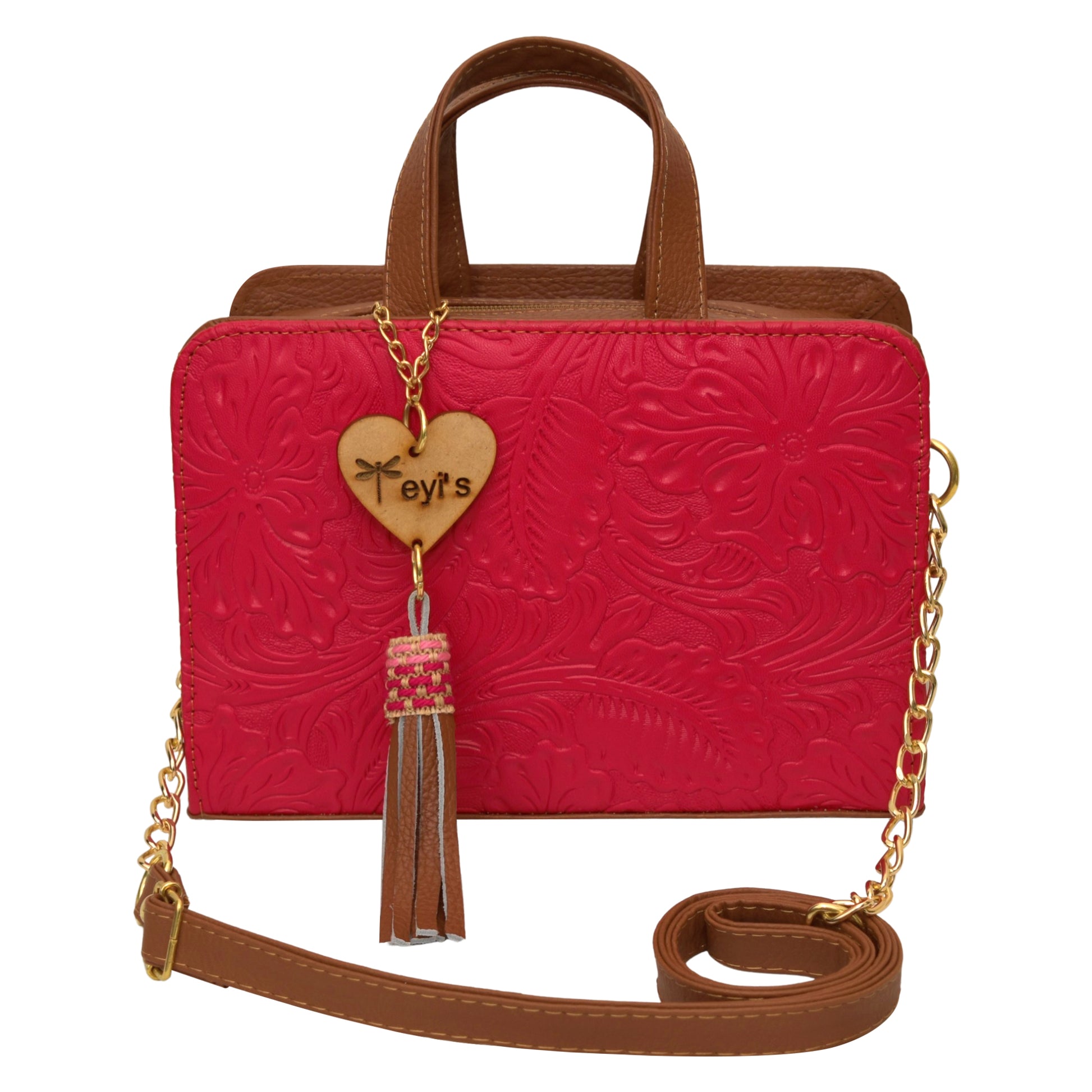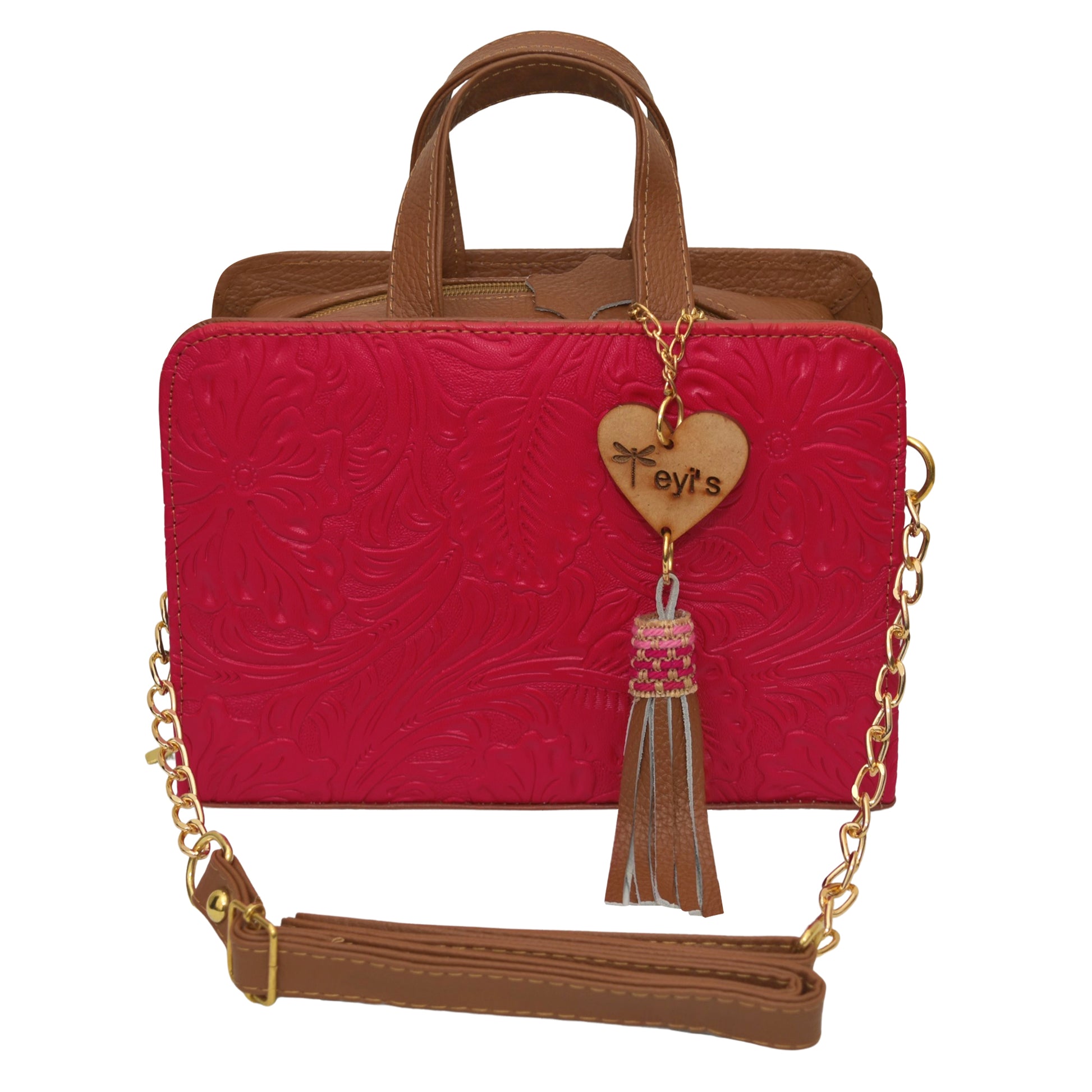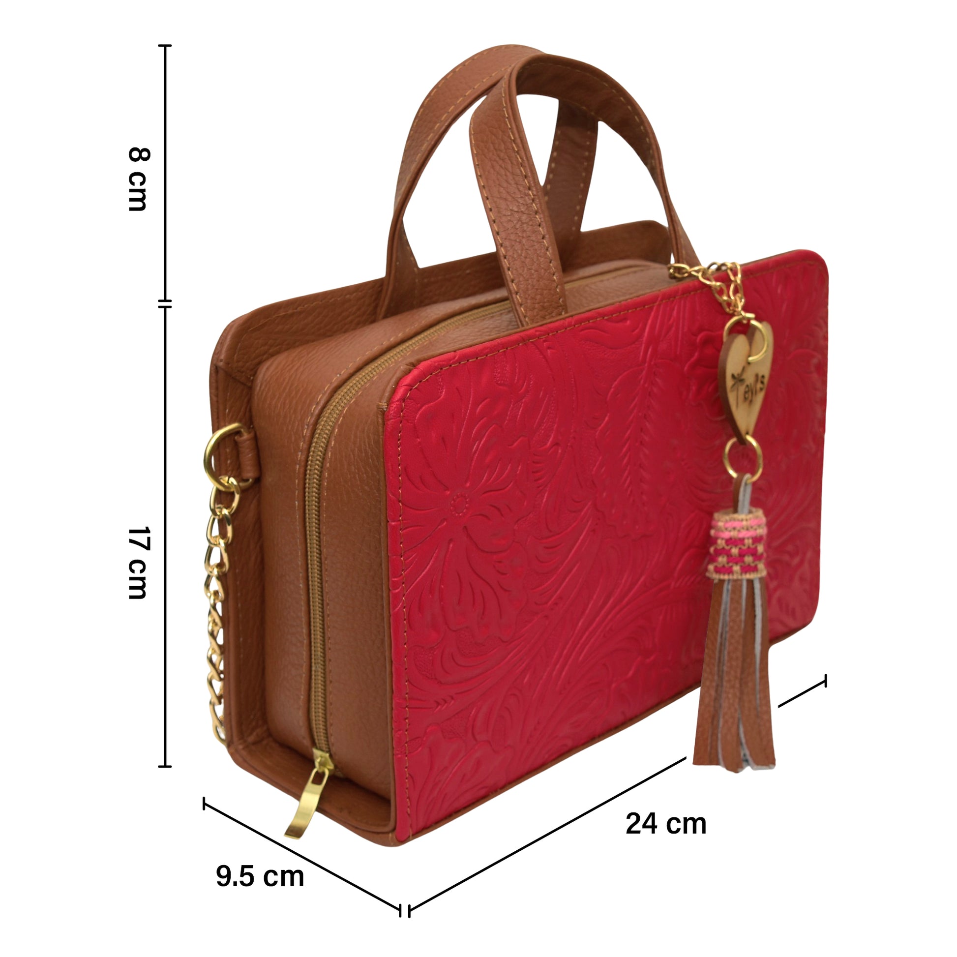Bolsa chica, tipo cross body, de piel 100% genuina, cincelada, color roja. Diseño casual para toda ocasión.