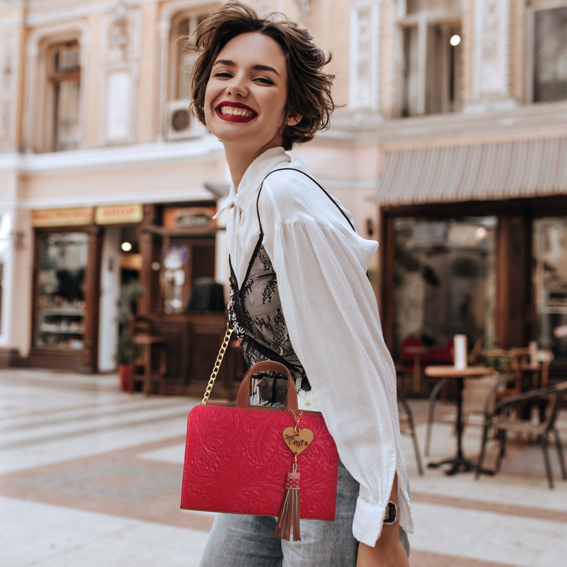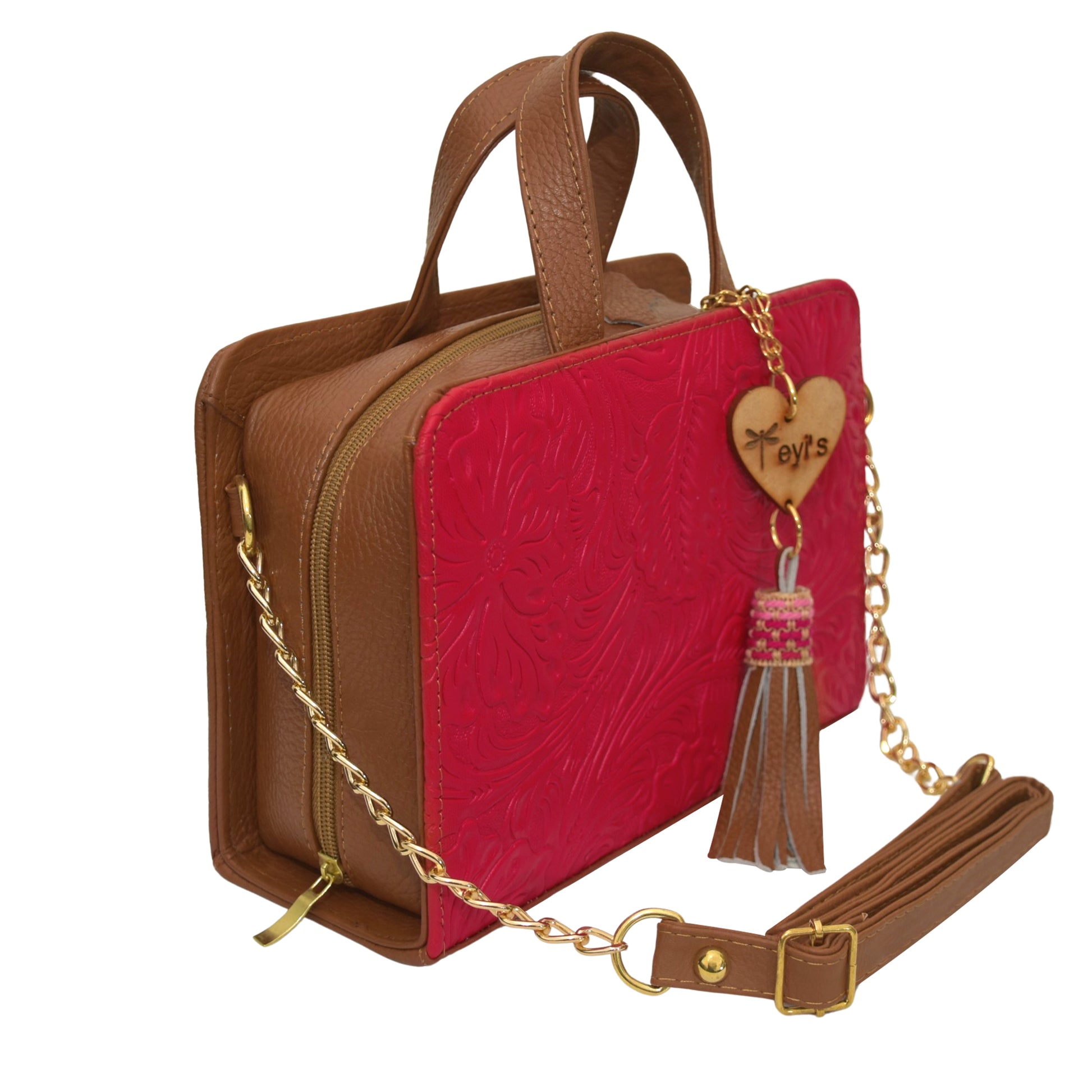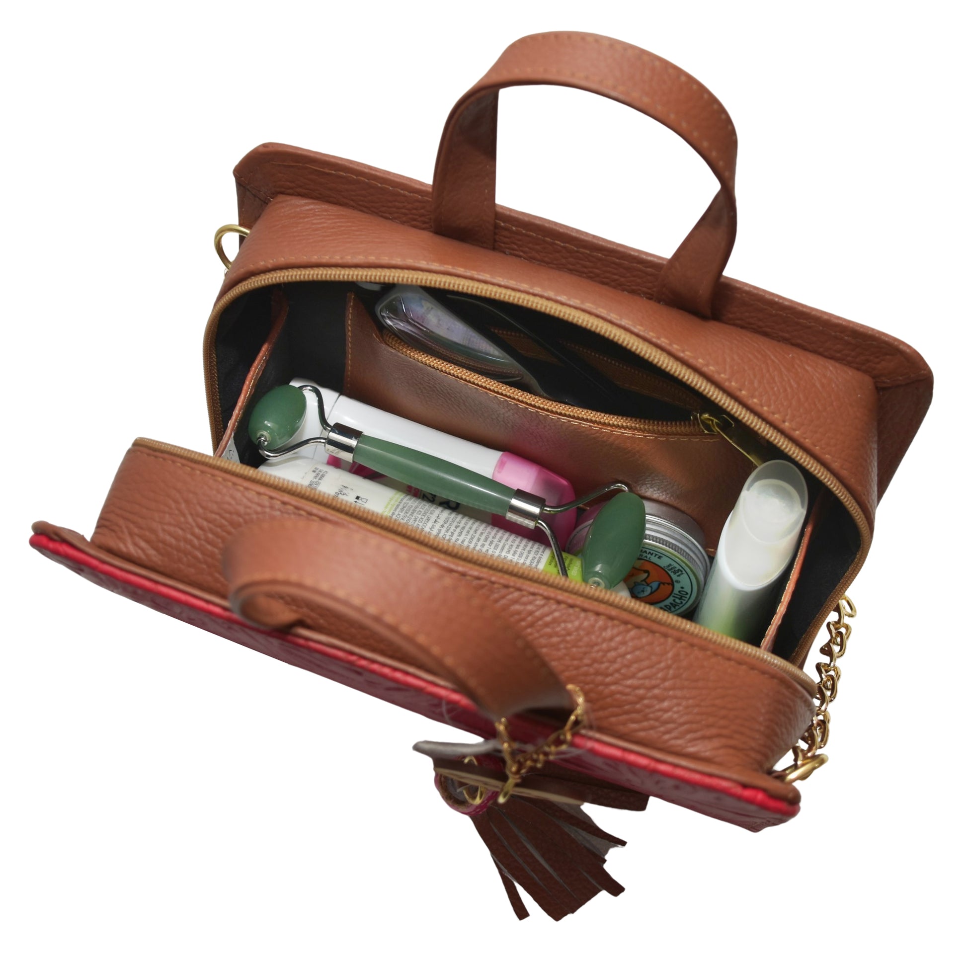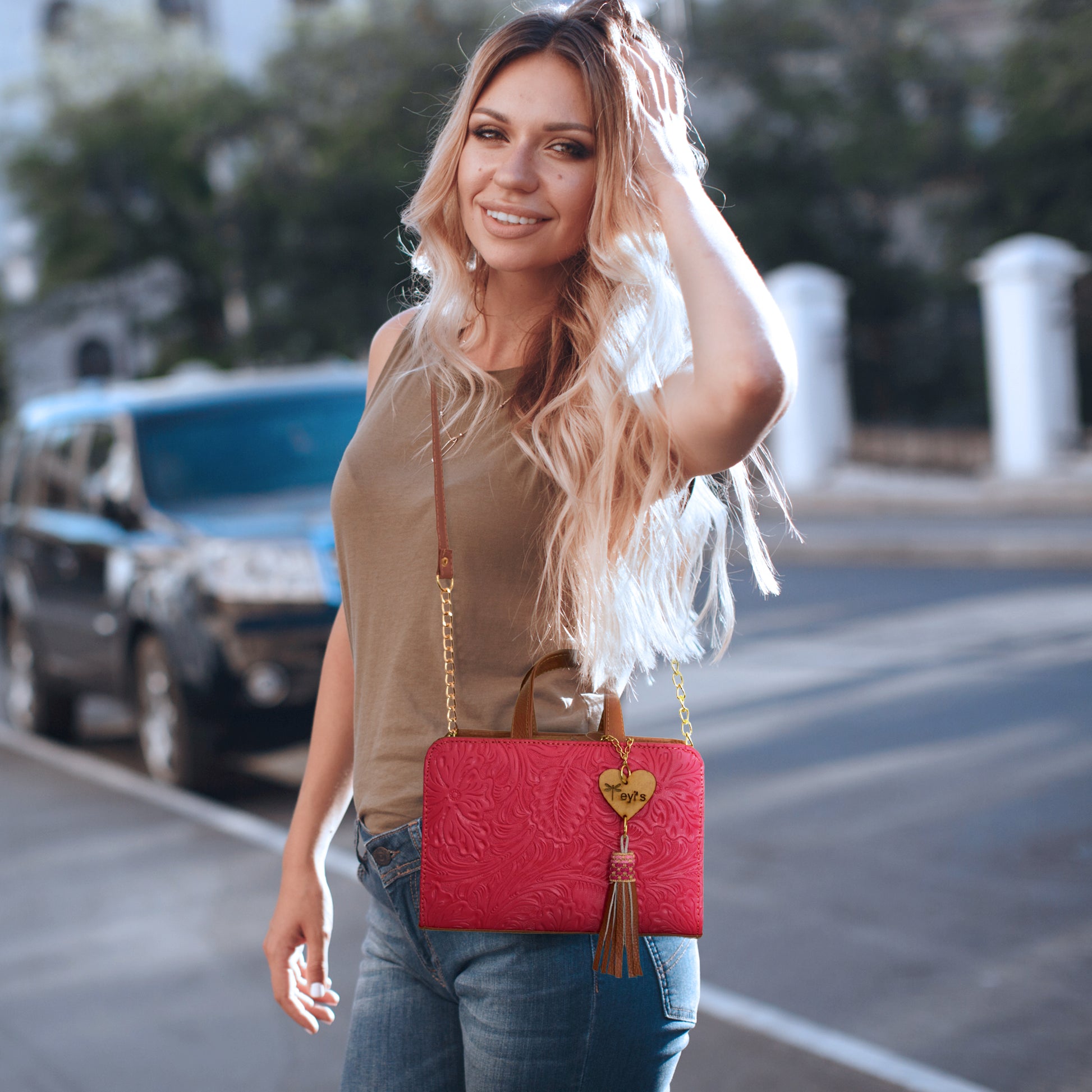 Bolsa chica, tipo cross body, de piel 100% genuina, cincelada, color roja. Diseño casual para toda ocasión.