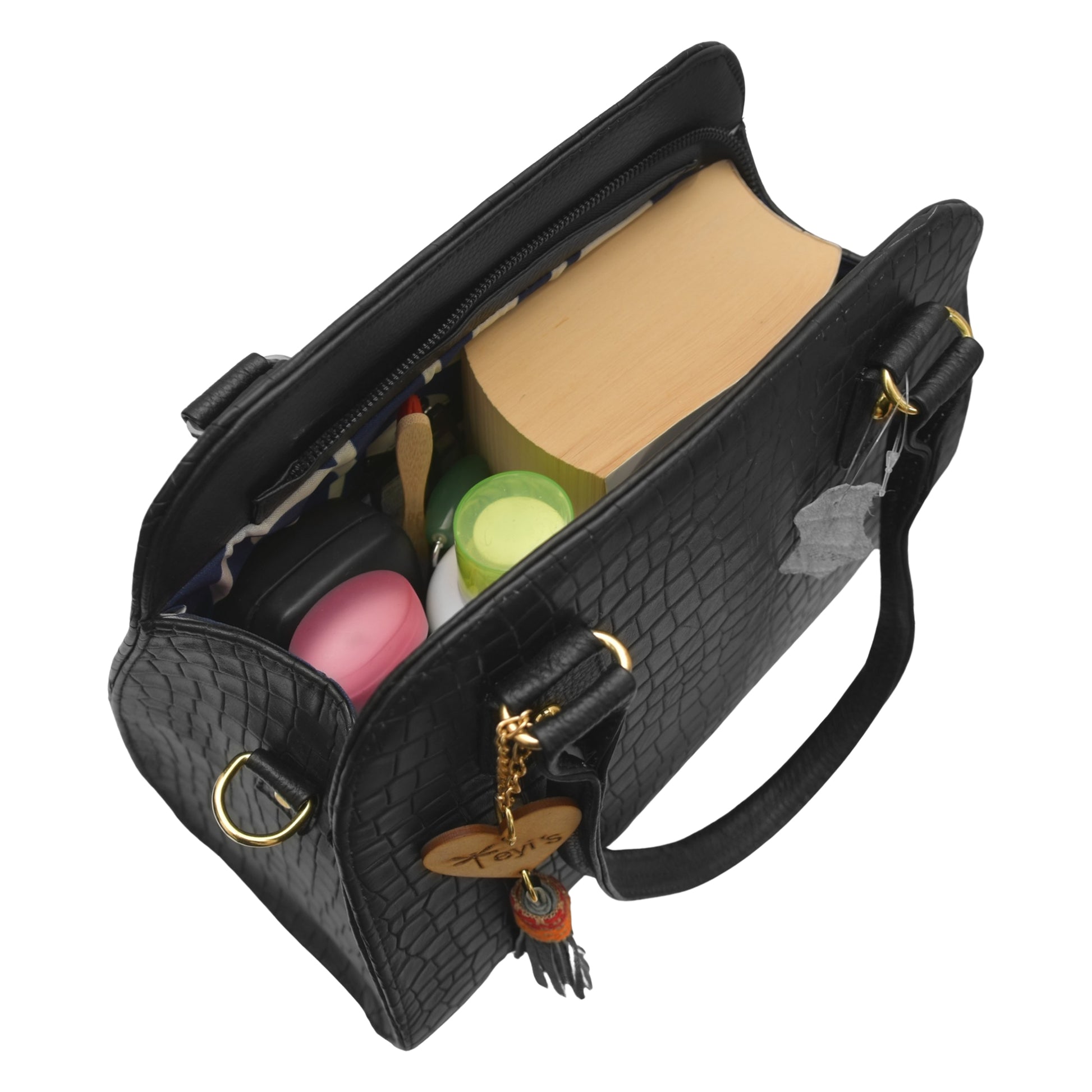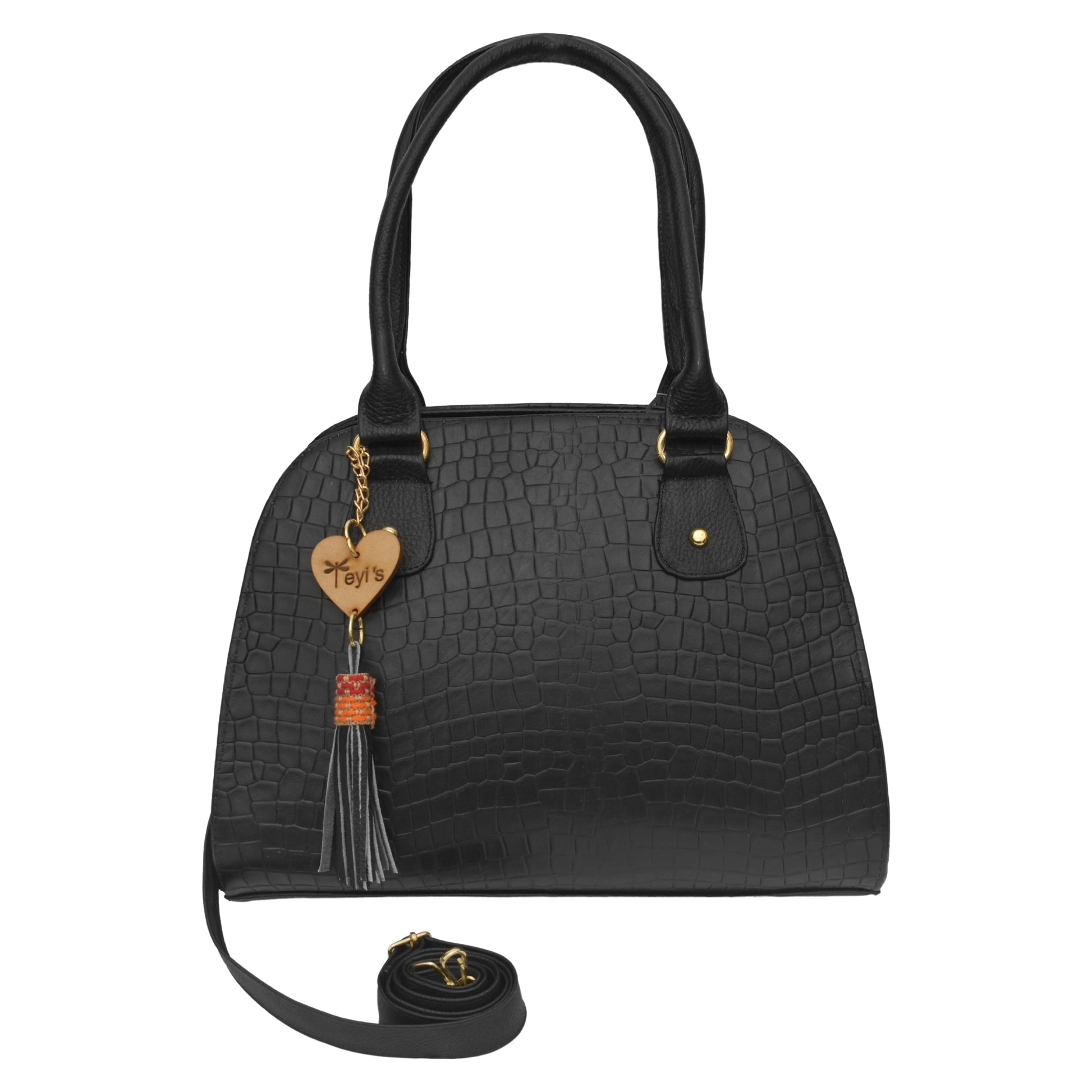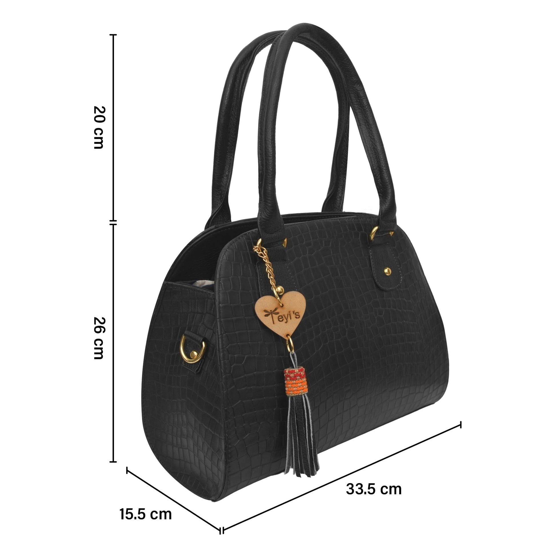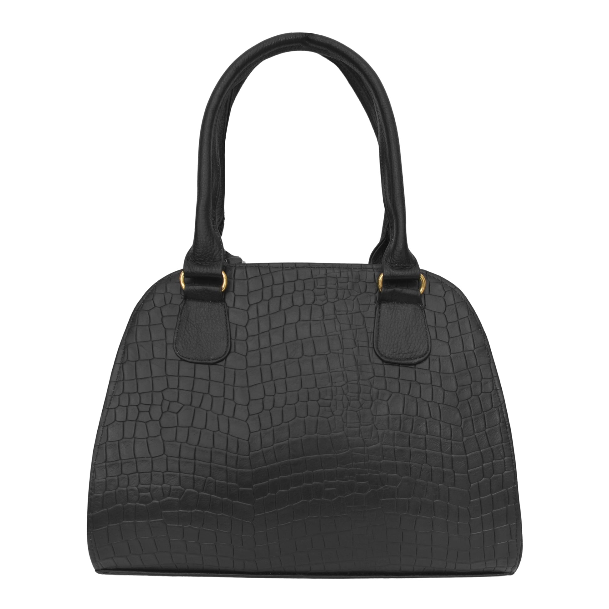 Bolsa negra de piel genuina, cincelada con acabado cocodrilo, tamaño mediana a grande, con diseño artesanal mexicano.