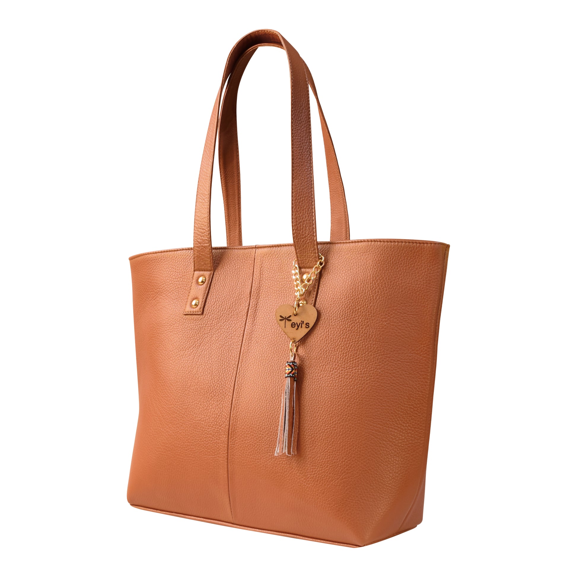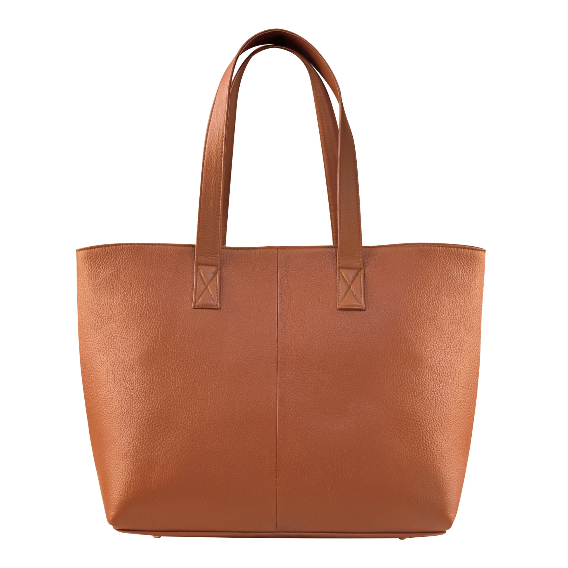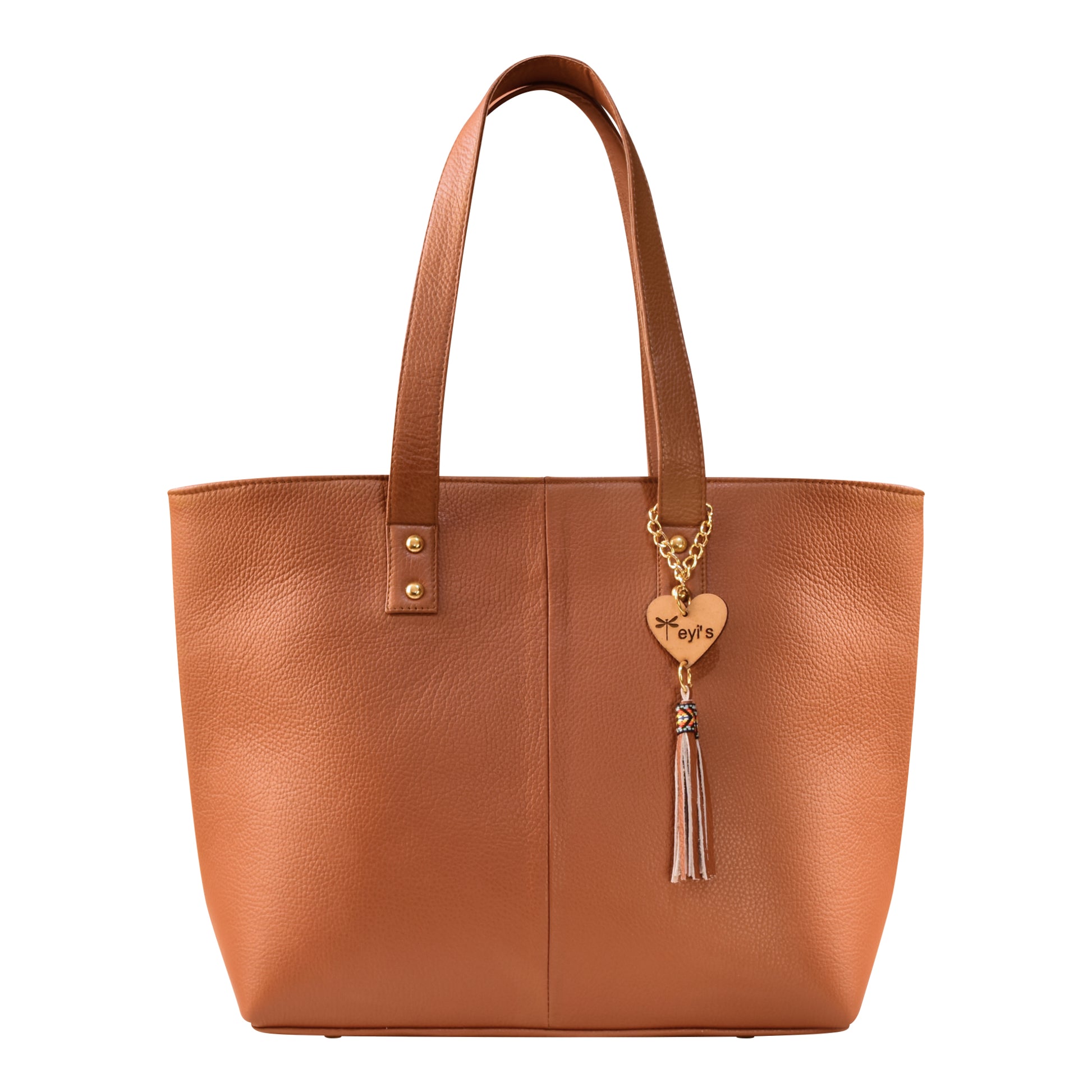 Bolsa tote grande, amplia de piel genuina con acabado liso color miel o cafe claro camel. Diseño formal y elegante.