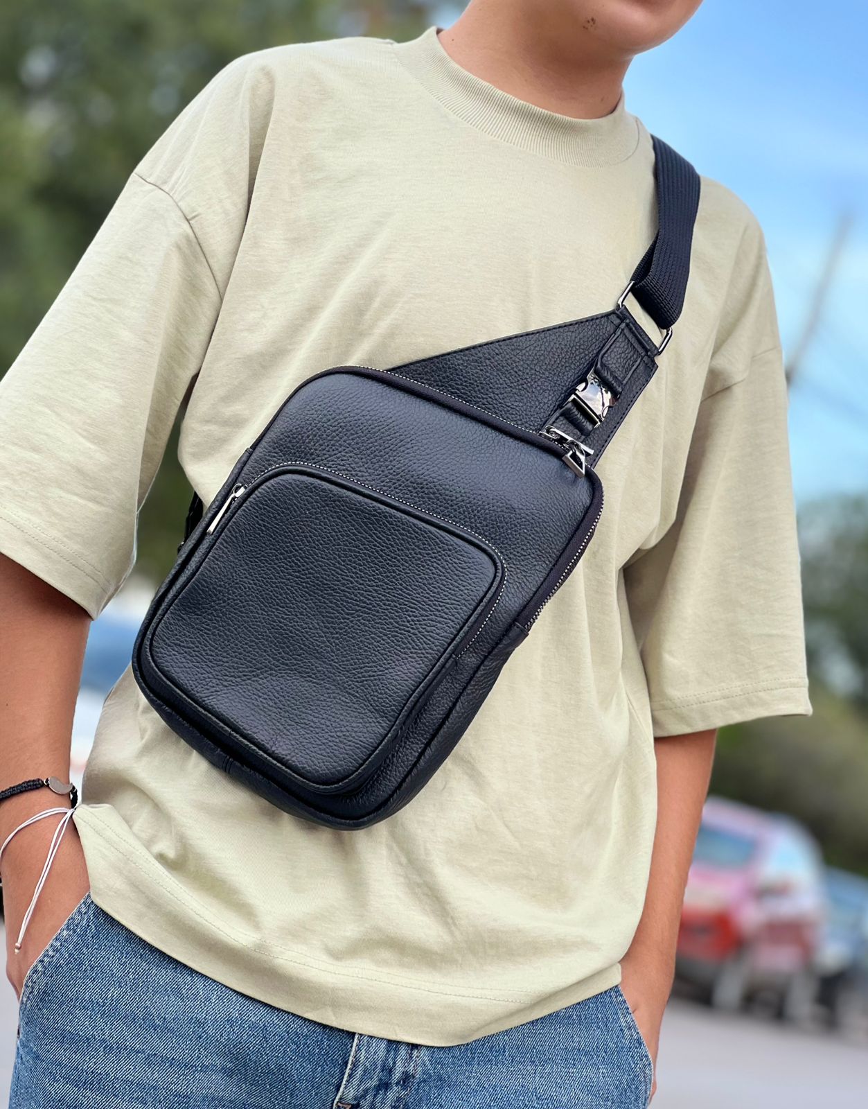 Práctica, cómoda, pechera de piel perfecta para llevar llaves, celular, lentes, cartera, audífonos, etc. todo a la mano y bien protegido. Compacta como una mochila pequeña, pero mucho más ligera. Ideal para el día a día, viajes o salidas rápidas.