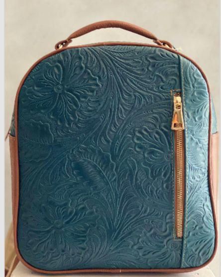 Bolsa tipo mochila / back pack de piel 100% genuina, mediana, con un diseño juvenil e informal. Hecha artesanalmente en México, ideal para viajes o el día a día.